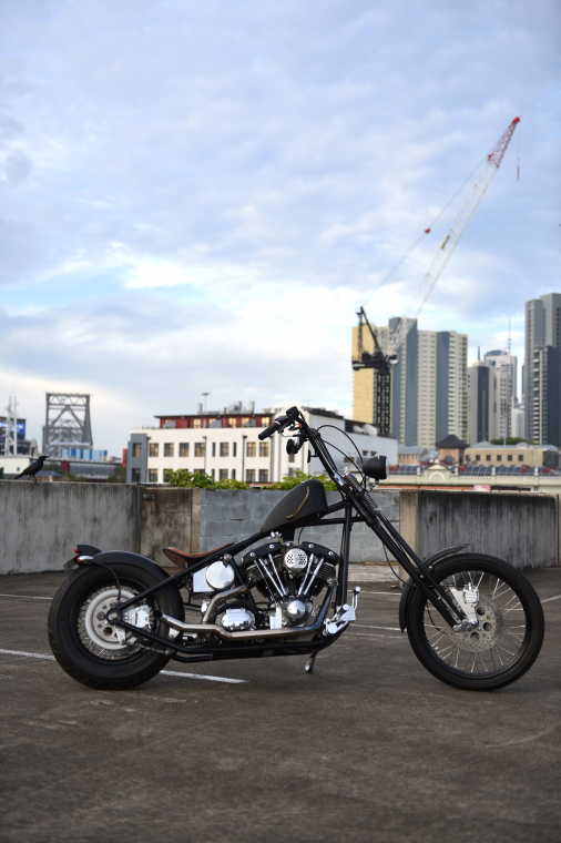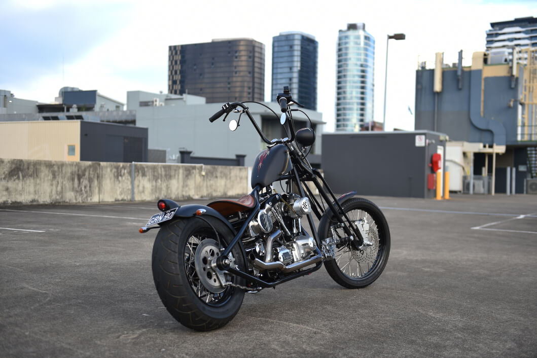 This build was slightly different to others in that Matt and his father took it on themselves to fabricate some twisted bar sections to be used for the gear linkage, breakstay and headlight mount, drawing on the influence of Indian Larry. These products were then handed to Joe to cut, drill, tap, bend and turn into useable components on the motorcycle. The custom bits and pieces snowballed from here. A Jesse James rear fender was used and heavily modified, some custom rear struts were fabricated to mount the rear guard and a holden conrod was used as the front lower mount. To get a clean look on the rear but still run indicators, round bar was centre drilled then bent after the fact so that the wiring could be run internally.